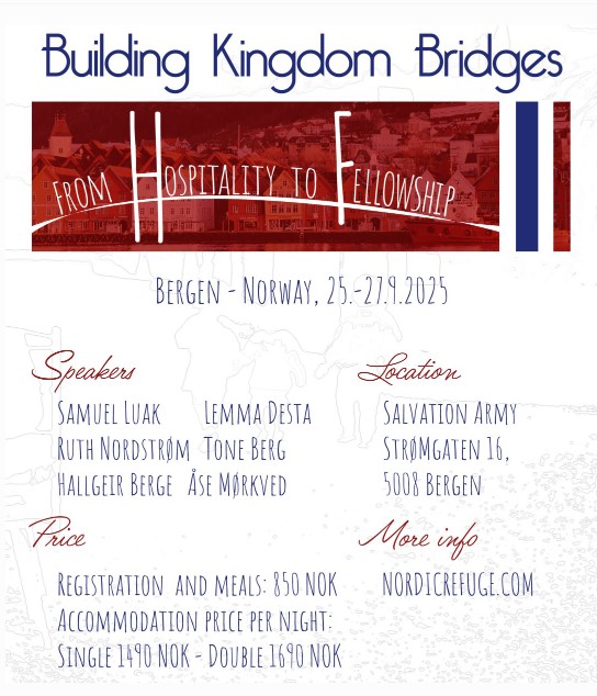 Kom til nordisk flygtningekonference i Bergen d. 25.-27. september 2025. Den 25.-27. september afholdes nordisk flygtningekonference i Bergen med temaet: Building Kingdom Bridges – from Hospitality to Fellowship....[mere]